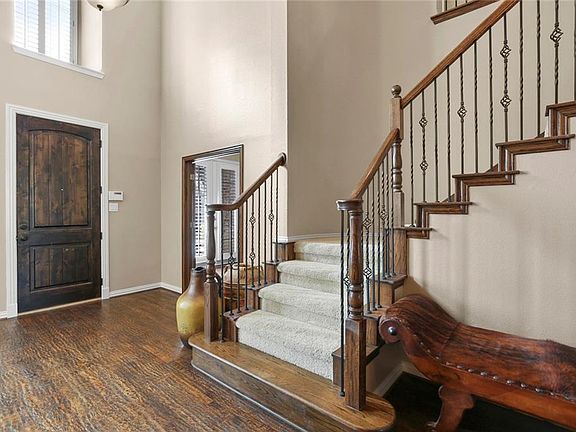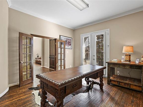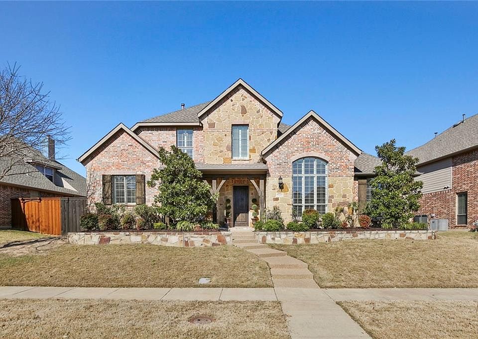 This 4 bed 3 and a half bath in Provence at Firewheel has tremendous curb appeal with its stone and brick facade. The warm, rustic hand scraped floors and plantation shutters give the home a unique atmosphere. Formal dining has a wine bar connecting to kitchen. Open concept kitchen is custom outfitted with commercial style range and vent, large wet island with copper sink, and plenty of custom cabinetry topped with honed granite. First floor master has elevated ceilings, large master bath with marble floors and quartz counters. Upstairs there is a media room, 3 bedrooms, 2 bathrooms, a bonus room and a landing that is perfect for entertainment. Pool and water feature, large patio and grill kitchen in back.