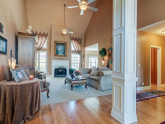 In a quiet neighborhood this home features 20' vaulted ceilings in LR and 13' in DR w/exceptional ceiling fixtures.Windows wrap this home. 3 BR's and 3 full baths. HW floors, tile & carpet. Gas fireplace. Kitchen with natural cherry cabinets & stainless steel appliances. Office could be used as 4th BR w/custom built-in shelving.MB has large walk-in closet, jacuzzi type tub & tiled shower. There is also a sunroom and upstairs bonus room suite. Full 1235 sf unfinished basement. A must see!