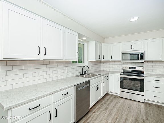 You will love this charming all brick 4-bedroom home that has been beautifully updated. The living room provides a comfortable retreat, featuring a fireplace and lots of natural light. Kitchen has all new solid wood cabinetry, stainless steel appliances & countertops. Step out onto the back patio that overlooks the peaceful backyard. Escape downstairs to the oversized family room, 4th bedroom, full bath, laundry room and additional storage. Situated in a convenient friendly neighborhood with mature trees, this home is a must see!!