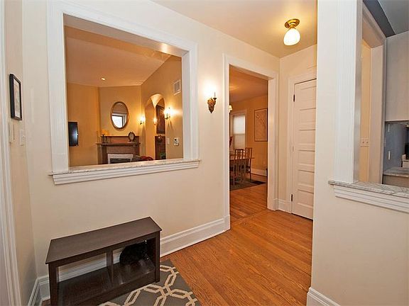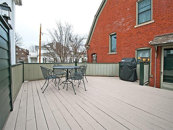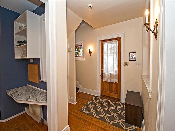 This unique home was renovated by a previous owner/architect. The open floor plan is accented by transomed doors and stained glass. There is hardwood throughout. The newer kitchen has white marble counters, stainless appliances and leads to a deck and landscaped yard. The living room has a slate mantel and the dining room has a wood burning stove. The master bath with a radiant heated floor has an oversized shower and clawfoot bathtub. The sitting room in the master suite leads to on open landing great for office space. The lower level was finished to be a media room/den