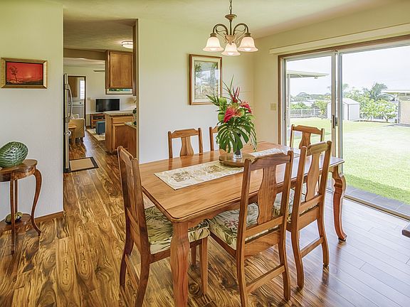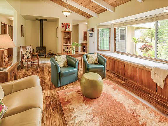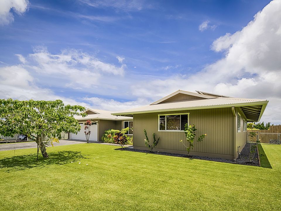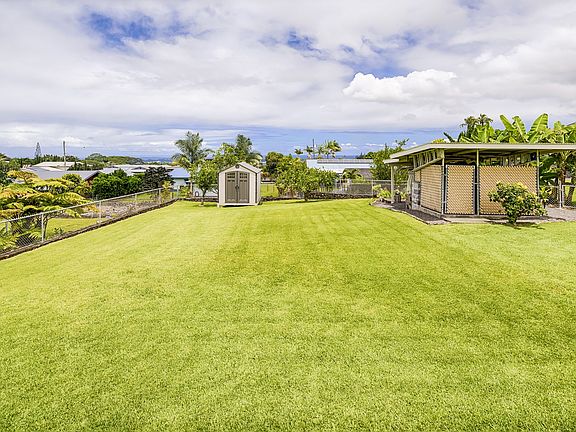 Fresh and bright single level home showing outstanding pride of ownership with ocean and Hilo Bay views. Separate living room with built-in window seat with lots of storage and wood burning stove; step-up dining room , kitchen and family room leading out to a room sized covered lanai with views of the manicured back yard and Hilo Bay in the distance. The bedrooms have extra large closets and the kitchen features two pantries and lots of other storage. There are granite counters, laminate floors, and an owned photo voltaic system with 16 panels. The back yard is fenced and has a dog kennel with its' own cesspool and a small greenhouse area. There is a nice sized work room off the covered lanai that doubles as a storage room - plus an additional stand alone storage building, There are motion sensor lights on the exterior of the house. This is a wonderful home in one of Hilo's favorite neighborhoods. Grab it fast!