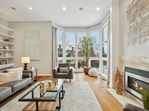 Welcome to this exquisitely renovated townhome in Mount Curve Place perched atop the Lowry Hill neighborhood! With approximately $250K of updates and improvements, this three-story lofted unit with elevator access to all levels will impress you from top to bottom. As you step into the main living space with newer hardwood floors, you will be adorned by the openness of the 11’ ceilings, the soaring bay window showcasing the beautiful neighborhood, bountiful bookcases, and a cozy gas fireplace. As you move into the gorgeous, remodeled chef-inspired eat-in kitchen, you will enjoy Viking appliances, new cabinetry & countertops, and a tiled marble floor. Just a step down through the sliding glass door to the cozy patio, you will find a dedicated gas line to support a BBQ grill. Retreating to the loft level with nearly 13’ ceilings, you will be elevated by luxurious wool carpet and elegant plantation shades in all the bedrooms. The primary bedroom with its bay window is sundrenched with light and comforted by a wood-burning fireplace for those cooler nights. As you prepare for your day in the remodeled spa-like ensuite bathroom, you will enjoy, a full custom tile surround, intricate marble tiled floor, dual sinks, and natural light from the overhead skylight. The home has many newer windows, updated or modern mechanicals, bountiful storage, and a heated garage with epoxied concrete floors and additional storage cabinets. These bespoke townhomes have brick paver driveways, are beautifully landscaped, and share an underground heated pool with the neighboring association. Mount Curve Place is located close to the Walker Art Center, area parks and trails, the Chain of Lakes, The Wedge Co-Op, restaurants, and so much more. See the 3D Virtual Tour and Supplements for a full list of improvements.