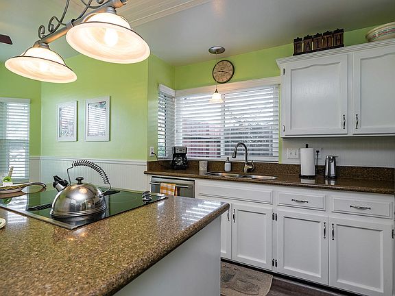 • Interior Features: Kitchen Island, Built-In Features, Stone Counters, Ceiling Fan(s), Crown Molding, Remodeled, Wainscoting, Chair Railings