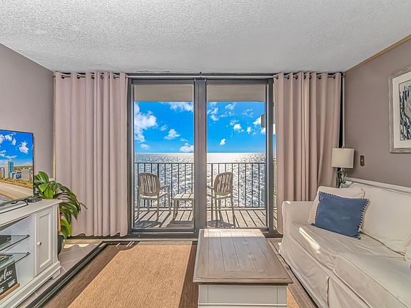 Enjoy the breathtaking ocean views from the 14th floor of this recently updated ocean front condo. This 2 bedroom 2 bath boasts a new slider door, newer kitchen cabinets, granite countertops and stainless steel appliances. Featuring coastal furnishings and decor, the living area features a sofa with a pull out bed and seating at the breakfast bar or cafe style table. The master bedroom features a queen size bed with an updated private bath and the second bedroom has a bunk bed with a twin over a full bed. Owners and renters enjoy an indoor pool, outdoor pool, large sun deck, game room, snack and beverage bar, onsite security and more. Call to schedule your showing today to see this well maintained ocean front condo.
