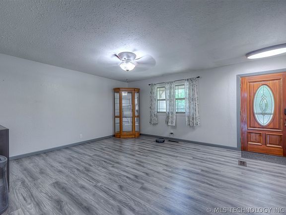 This home has so much to offer! TOTAL SQUARE FOOTAGE IS 2,264, THE HOUSE IS 1,664 AND THE OFFICE/MOTHER-IN-LAW SUITE IS 600 SQ FT. The house is a 3 bed, 1 ½ bath 2 car garage with a 5x7 safe room included. Recent updates include HVAC, HWT, vinyl windows, storm doors, flooring, fixtures, vanities, & extra insulation. The kitchen has new cabinets, granite countertops and SS appliances with refrigerator remaining. There is a granite corner coffee bar that is large enough for a couple of barstools and a huge pantry with barn door. The dining room is big enough that you could make it a 2nd living room with dining space. The indoor utility/mud room has walls of built-ins for extra storage and has an entrance from outside so the mess stays there! The washer and dryer remain. 200-amp service and RV hook-up with 2 driveways for all the toys! Covered front porch and screened in back porch that has a pad and electric for a hot tub. The 600 sq ft building is finished with full bathroom, kitchenette, with refrigerator remaining, heat/air, flooring fixtures, and cable. This building would be great to run a home-based business, MIL suite or rental. It has a separate driveway and private entrance. It has an 8x30 screened in porch/storage area attached. Additionally, there is a 12x30 building with covered patio and window unit and a 10x16 shed! The property sits on a corner lot with a fully privacy fenced backyard for all your entertainment! DON’T MISS THIS ONE!