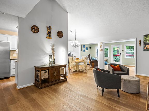 Welcome to 1210 Neilson Ct! The sellers of this charming home in the heart of Cary have spared no amount of time and investment to prepare this home for today's buyer. The Cary greenway and Annie Jones Park are located directly behind the home offering access to miles of walking trails and recreation. As you enter into the home, you are greeted by wonderfully finished LVP flooring throughout the main left area, vaulted ceilings and a variety of living spaces. The kitchen features beautiful white cabinets, granite counter tops and stainless steel appliances. Venture into the dining room to find the addition of a bar, wine cooler, pantry and cabinets doubling your kitchen storage space. Enjoy chilly evenings in the sitting room with a nice wood burning fire or enjoy hot summer days overlooking the wooded yard in the recently added sunroom. The large owner's suite features laminate flooring and a walk in closet. Outside, you will find a beautifully finished, large stamped concrete patio overlooking the private back yard surrounded by mature trees. This is truly a special home in an amazing location that is ready for its next owners.