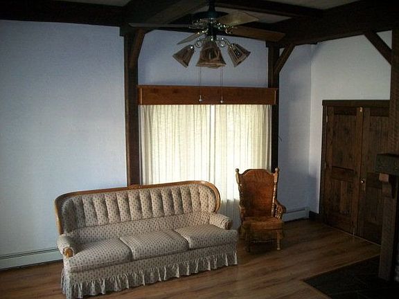 7277...This home has so many possibilities!! The main residence has 4 bedrooms, 2 baths, central air, a huge living room with brick hearth fireplace w/gas insert, separate dining room, heated sunroom, newer siding, newer windows and roof, hardwood floors and storage galore. The 1 bedroom apartment above the garage has new carpeting, fresh paint, all the appliances and an updated bath. The level lot has a large shed and a fenced garden area ready for you to put your stamp on it. Rent the apartment for income or keep it keep as an in-law suite!!!