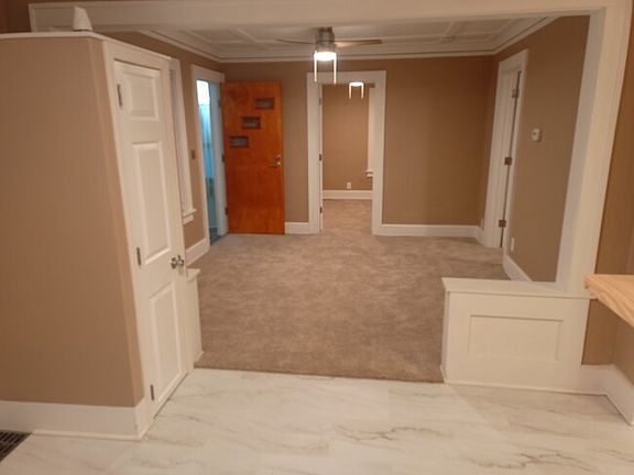 Inflation buster - listed rent includes a big on time payment discount.3 bedroom and two bathrooms about 1,500 square feet. Everything clean, fresh, and well done.New high grade carpet with comforfoam padding that is so soft.Sharp upstairs bathroom with clawfoot tub, brass fixtures, and contrasting black/white colors.Kitchen with lots of storage in nice cabinets. Gas stove, dishwasher, and refrigerator included.Two bedrooms upstairs with one having a large closet. Three season porch and living room also upstairs.Downstairs is a Master suite with lots of light. Bathroom with shower and laundry. - Washer / dryer included. Large master bedroom looks out into the back yard. Room next to it is an office/closet/shelter/game room. There is also a sitting area.Outside is a 1.5 car garage with a shed behind it. Lots of off street parking. Partially fenced yard with a deck, big tree and lots of shade.Quiet neighborhood with quick access to highway, main roads, and bus stops. Also close to McHenry Park, Riverview Park, and bike trails Riverview Park has outdoor concerts during the weekends.Online application, background/credit checks