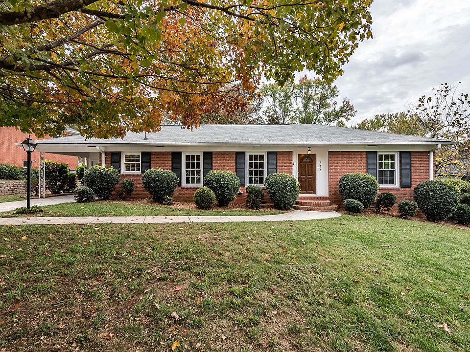 Terrific full brick ranch in the heart of Ashbrook is ready for its new owner. Freshly painted with gorgeous hardwood floors throughout main living areas and bedrooms. Fully updated kitchen with glazed cabinets, neutral Corian counters, tile backsplash, stainless appliances and a charming picture window overlooking a glorious maple tree out front. Mudroom entry off carport with laundry leading to den with fireplace and access to a screened porch. Bright and spacious formal living room is located off of a foyer featuring built-ins. Three bedrooms are located down a private hall and include a master with ensuite and another full bath. Located in the booming Ashbrook neighborhood just minutes from greenway access and all the amenities of adjacent Park Road Shopping Center with quick access to SouthPark, Dilworth, Myers Park, and Uptown Charlotte.