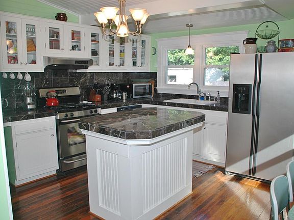 Charming home with many updates in Irish Hill near Nulu, Clifton, Butchertown, Phoenix Hill, the Highlands, and downtown. Updated vaulted eat-in kitchen with white cabinetry, full appliances, and a marble center island and countertops. There is pine flooring throughout the house other than the bath. The living room features built-in cabinetry and shelving and there is also a large dining room. The bathroom was professionally finished with a tile walk-in shower and flooring. There is a partially finished attic area with pine flooring. The aluminum exterior was painted in 2018 & replacement windows throughout. Enclosed backyard with a privacy fence w/sidewalk to rear off-street parking and large storage shed. Also has a cellar. All kitchen appliances and 3 air conditioners remain.