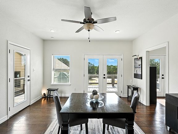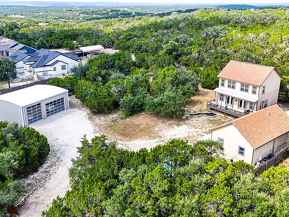 BEAUTIFUL HOME WITH AN ADDITIONAL EXTRA HALF-ACRE LOT, GUEST HOUSE, GYM AND CUSTOM OVERSIZED 3-CAR GARAGE. Lovely, relaxing home, with country views and in-ground pool. This meticulously well-kept home, is tucked away behind trees and a security gate. All in the sought after Rancho Del Lago West neighborhood. This cozy 3 bedroom, 3 bath home/guest house has an abundance of natural light, with oversized windows throughout and two sets of glass French doors. Relax in the living room with a custom 36" Antarctic Star Electric Fireplace, or step out to the spacious attached deck and embrace quiet country living. After a workout in your own private gym, dive into your pristine and private pool-any time of year-it has a heater! Or take a stroll to your oversized 3-car garage/shop. This 40' x 30' detached building-on-concrete-slab with electricity and custom Clopay Avante full view clear glass overhead doors make the perfect he-or-she-cave. Country living, but still close to everything you need. Located just minutes from the blue waters of Canyon Lake, shopping, restaurants, Whitewater Amphitheatre, and the Guadalupe. And, just thirty minutes from Gruene and New Braunfels with convenient access to both San Antonio and Austin.
