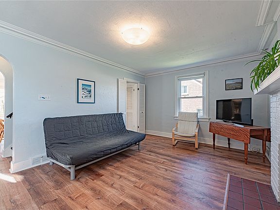 Brick colonial home in the quiet Swisshelm Park neighborhood, only a few blocks from Swisshelm playground! Bright living room with decorative fireplace flows through curved archways to the dining room (which walks out to the back porch), and then into the fabulous kitchen. Lots of butcher block counter space, lit glass cabinets doors, SS appliances, and recessed lighting. Two nice sized bedrooms upstairs, an updated full bath, and a smaller room that can be used in many ways but is currently set up as a walk-in closet. 3rd level is an amazing bonus space currently being used for storage, but has the potential for much more. Full basement is dry, and has an enclosed half bath, laundry room, and lots of extra space for storage. You won’t spend your weekends doing yard work with the low maintenance yard! Raised beds out back for gardening. Detached one car garage, and one off street space. 5 minutes from dining, shopping, and more.