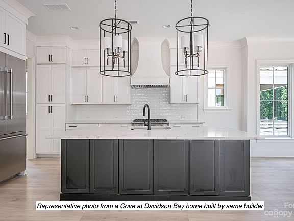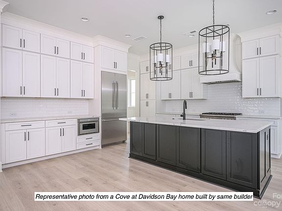The very last opportunity to live in the Cove at Lake Davidson in a new home by CBA 2023 Builder of the year. Located perfectly along a natural cove, this custom home will feature dramatic water views from all three floors, open floor plan, gourmet kitchen and much more. The Cove at Davidson Bay is equidistant to the best of Davidson including historic main street shopping, dining, and Davidson College, as well as shops at exit 30, I-77 and Lake Norman. Neighborhood amenities include a large private waterfront common area accessible to the neighborhood with kayak/paddle board storage and easy launch as well as walking trails and ample parking. All landscaping maintenance is included in HOA dues. The Portofino elevator ready floor plan is the largest available plan in the Cove. This plan will be elevator ready- an elevator will be an additional cost.