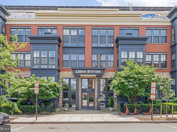 BEAUTIFULLY RENOVATED TWO BEDROOM/TWO BATH CONDO IN SOUGHT AFTER AND RARELY AVAILABLE LOGAN CIRCLE GARAGE PARKING AND PRIVATE BALCONY! This spacious (approximately 1,100 square feet) condo offers one floor living, 12' ceilings, new hardwood floors throughout and practically new everything! Top of the line stainless steel appliances in the Gourmet kitchen w/ sleek marble countertops and matching backsplash, ample cabinet and counter space and under cabinet lighting. Large island offers space for additional seating and entertaining. In unit full size stackable washer/dryer. Living room offers a wall of windows looking onto a beautiful brick red historic church. Recessed lighting and new lighting throughout. Open floor plan perfect for entertaining. Two large renovated bedrooms w/ new flooring, shower, vanities, lighting and linen storage area. Primary bedroom offers a hall of ample closet space leading to large primary bath. Newer In Unit Smart HVAC System. Keyless Keypad Access for Unit. Custom designer light-filtering window treatments and Wood Shutters in primary bedroom. Private Balcony off of Primary Bedroom. Garage Parking Space in Secured Garage w/ easy access to the elevator.. Secure Building w/ ButterflyMX for Virtual Access and Garage w/ Garage Door Opener. Pet Friendly Building allows two pets, no size restrictions!!! Elevator in Building. Prime Logan Circle Location - Walk to Whole Foods, Trader Joe's and Popular Restaurants along 14th Street and U Street!!!