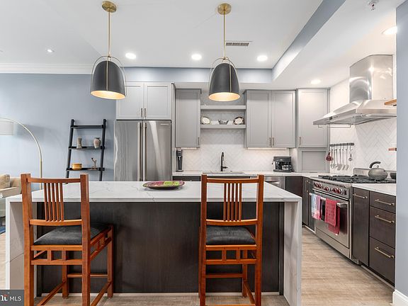 Located in the coveted Logan Station condo building, this luxury two bedroom, two bathroom condo offers everything a city dweller could want. The entry level offers a recently renovated, Case designed kitchen with Wolf range and premium stainless appliances. You’ll enjoy the abundant storage and stylish open shelving and luxury finishes. The open plan living/dining/kitchen offers abundant natural light and plenty of space for entertaining or simply relaxing. The entry level bedroom is perfect for other household members, guests or a home office. Upstairs you will find the ultimate primary suite with custom fitted walk-in closet, large bedroom with room for a sitting area, primary bath with separate tub and shower and the piece de resistance is the large private terrace (measures 24 ½’ x 8’). There are two entrances to the terrace which allows you to entertain on the terrace without parading your guests through your bedroom. Seller has recently installed new HVAC system (<90 days ago). To add to your convenience, this property comes with one underground parking space and a separate storage unit. All of this is located close to the many restaurants and retail establishments that make Logan Circle such a desired neighborhood.