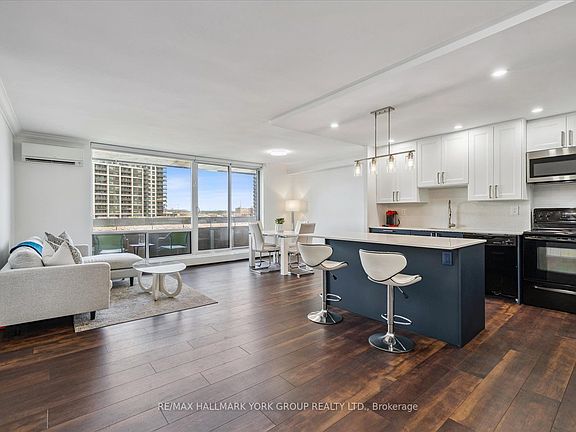 Welcome to 1210 Radom St #701 a beautifully renovated 2-bedroom, 2-bathroom condo in one of Pickering's most convenient and commuter-friendly locations. Utilities heat, hydro, and water are all included in the monthly maintenance fees! making this a hassle-free living option. This spacious unit (over 1000 square feet) has been fully customized with a modern open-concept layout and stylish finishes throughout. The brand new kitchen features quartz countertops, sleek backsplash and pot lights. The living area boasts smooth ceilings with crown moulding, new vinyl flooring (throughout), and upgraded baseboards. Both bathrooms have been fully renovated, and the unit includes new windows, a new sliding door to a large balcony, new blinds, and updated interior doors with modern hardware. Comfort is elevated with a Mitsubishi ductless heat pump offering three indoor head units for cooling and heating in the living room and both bedrooms in addition to the existing radiant heating system. The primary bedroom includes a walk-in closet, and the upgraded electrical panel, switches, and plugs complete this top-to-bottom transformation. Located in a well-maintained building just minutes from Pickering GO Station, 401, Pickering Town Centre, parks, schools, and scenic Frenchmans Bay. With easy access to the Lake Ontario waterfront and trails that stretch all the way to Whitby, this home offers the perfect blend of convenience, comfort, and style!