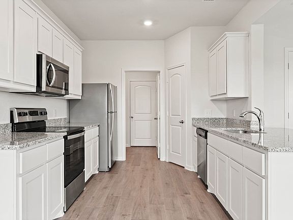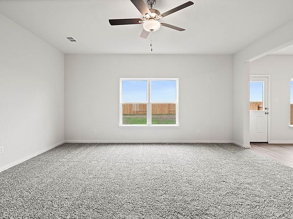 This thoughtfully designed home offers a seamless open-concept layout that’s perfect for modern family living, with the kitchen beautifully situated between the living and dining areas. The heart of the home is the spacious family room, complete with vaulted ceilings that enhance its welcoming atmosphere—a feature shown to boost appeal and value. The kitchen shines with a highly coveted island topped in granite countertops and complemented by beautiful wood cabinetry—granite remains one of the most sought-after upgrades in listings. Adjacent, a versatile flex room gives you the flexibility to use it as a home office, game room, or cozy media space. Step outside to the covered back patio and fully fenced yard—an ideal play area for kids and pets, just the kind of family-friendly backyard buyers love. Thoughtful extras abound, from professionally landscaped front yards and walk-in closets in every bedroom to a two-car garage equipped with a Wi-Fi-enabled opener. Conveniently located right off Hwy 69, this home offers easy access to dining, shopping, and key employers—offering both style and practicality in one exceptional package.