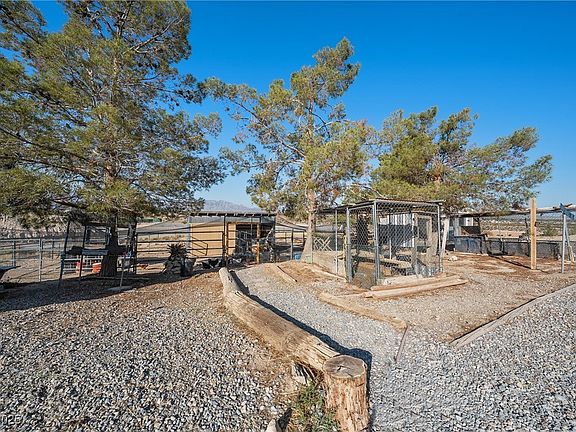**HOME FEATURES A SOLAR ENERGY SYSTEM UNDER A PPA WITH VALLEY ELECTRIC DESIGNED TO REDUCE ELECTRICITY COSTS COMPARED TO TRADITIONAL UTILITY RATES** Buyer assumes agreement at close. Sprawling 2.3-acre property with panoramic mountain and town views—no immediate neighbors! Designed for comfort and function, this fully fenced property features solar power, 400 amp service, 30 amp RV hookup with water and cleanouts, and extensive irrigation on timers for palms, cacti, shrubs, and trees. Ideal for animal lovers and those looking for a SUSTAINABLE LIVING HOMESTEAD with enclosures for chickens, goats, 3 dog runs, 2 kennels, tack rooms, hay/feed room, and two extra storage sheds. Garden-ready space, carports, garage, shaded parking, and 230 ft retractable hoses make outdoor maintenance a breeze. A rare opportunity for rural living with modern convenience!