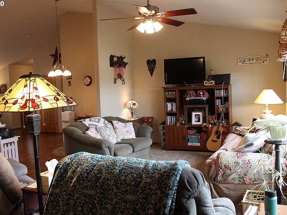 #3504 Outstanding Strawberry Mountain Views from this custom 4 bedroom 2 bath 2040 Sq/ft home.Open floor plan with beautiful kitchen,SS appliances,Corian countertops,island.Master Bedroom offers large walk in closet, bonus room w/french doors out to deck.Master bath w/soak tub and walk in shower.Large fenced yard,deck w/covered area,firepit,storage shed and lots of room to park all your toys. 2 car garage w/built in storage shelves. All appliances included.