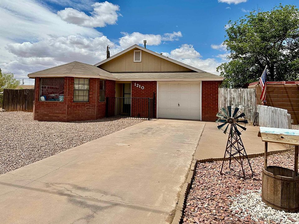 Welcome to this cozy two bedroom, one bathreoom brick veneer home. Conveniently located near shopping, schools, restaurants, walking trails, and quick access to HAFB. New carpet installed in the bedrooms, and tile in the rest of the home for easy maintenance. The eat in kitchen features a bay window with views of the Sacramento Mountains, for a perfect sunrise coffee spot! Back yard is fully fenced in and has potential and space for a garden. Covered patio off the living area has mature rose bush. One car attached garage and extra concrete driveway for additional parking. Don’t miss this one!