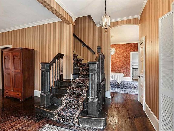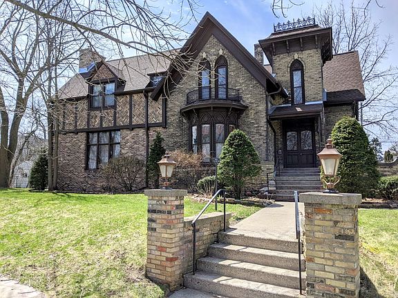 EXTREMELY RICH CHARACTER & deeply HISTORIC brick home can be yours! The Rahr House, aka August F. Dumke/Walter E. Spindler House, is the only house in Manitowoc which reflects the high style Victorian Gothic Revival school of architecture. Situated on .5 acre w/views of Lake Michigan, this 4200SF stylish residence has a ton to offer anyone w/sunken FR w/fireplace, formal dining, walk-in pantry, REDONE KT, awesome library w/half bath, hardwood floors, built-ins, French doors, outdoor patio, BRs w/unqiue attributes. Full LL w/rec rm w/FP. OLD TUNNEL. Foundation: brick, other rm is den