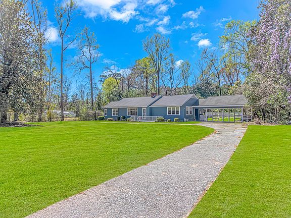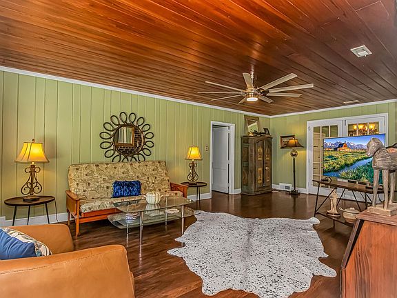 Well-Established - tree lined neighborhood. Turn in the circular driveway to this updated classic 1950 home with huge amounts of both charm and room!!!!!! Sits on 2.15 acres with NO HOA!!!! Very well maintained 4 bedrooms 2 baths with 2 ensuites. Cypress wood construction, new windows, new exterior paint, new concrete countertops. Open the sliding glass quadruple pane Pella - set of doors - that overlook the spacious fenced backyard and patio with outdoor fireplace. Indoor/Outdoor living. This house has so much to offer - a must see.