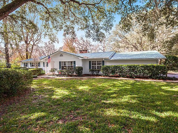 WOODFIELDS home in park like setting on oversized lot! Gorgeous oak trees & mature landscaping welcome you to this lovely ranch style home situated on nearly .75 acres in one of Ocala's most desirable locations. Pristine original hardwood floors throughout most living areas and all bedrooms. Huge family room open to updated kitchen w/granite counters, breakfast bar, & eat in area. Large dining room w/cathedral beam ceiling & fireplace could be second living area. Great size guest bedrooms w/deep closets for storage and updated guest bath. Wonderful master suite w/walk in closet and big master bath addition w/double vanity, jetted tub and walk in shower. Large covered porch overlooks fenced backyard with RV storage and playground. UPDATES: Roof 2012, kitchen, baths, inside laundry.