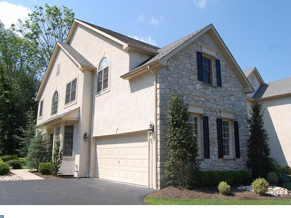 Wonderful End unit carriage house in the Reserve at Trewellyn! Dramatic Two Story foyer with many windows and a turned staircase and The two story family room boasts a wall of windows and a gas fireplace, plus 2 doors that open to the rear deck overlooking wooded area. The gourmet kitchen features 42 in cherry cabinets and corian counter tops with a large breakfast room. Convenient first floor laundry and powder room. All HARDWOOD floors throughout at 1st floor. The master bedroom offers 2 walk in closets plus a den/sitting area. The basement is finished with pergo floor, and offers a walk in cedar closet, and storage areas. Freshly painted. 1st & last month rent plus security deposit required.