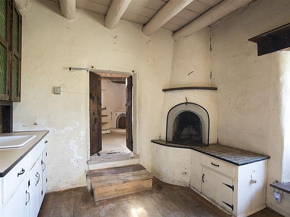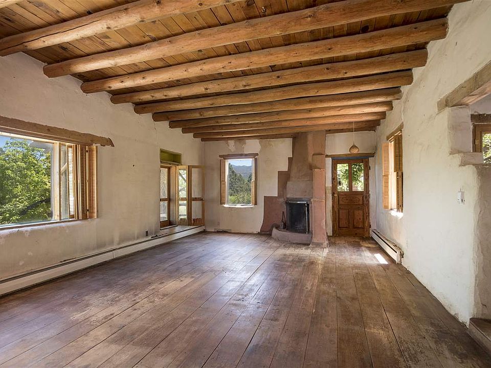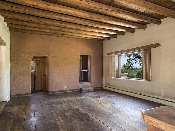 This charming adobe home offers a rare opportunity on Upper Canyon Road. This unique property features a spacious living room with beautiful, natural light, vigas, wood floors., kiva fireplace and mountain vistas. This two bedroom home has 4 kiva fireplaces, vigas in every room including the garage, and the floors are wood and flagstone. The lot is terraced and the gardens are lovely with mature trees, roses and peonies too! The upstairs is 1263 square feet, the downstairs is 624 square feet and the detached garage is 442 square feet. There is also a single car carport. Ideas are endless on the many options to update this wonderful home in a fabulous location!