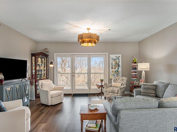 Live w/ elegance & style in this fabulous 2 bedroom 2 bathroom condo at Deer Run. This open floor plan provides a great visual in every direction & an abundance of light w/ North & East facing views. The primary suite is an elegant retreat w/ a great WIC & a private bathroom w/ large vanity & walk-in shower. Enjoy your stunning view of the Big Sioux River from your private composite deck. Appealing, high contrast kitchen w/ sharp white cabinets, quartz countertops, updated appliances & recessed lighting. This lovely condo is move-in ready & situated in a premium central location next to the river & Yankton Trails. Heated, underground parking included. Enjoy the updated interior features as well as the newer Furnace & AC! The building & community also has much to offer. HOA includes snow removal, lawn care, exterior building maintenance & insurance, water/sewer, cable, internet, exercise/community room, soft water, & a guest suite that sleeps 4 for $50 a night.