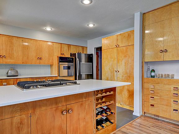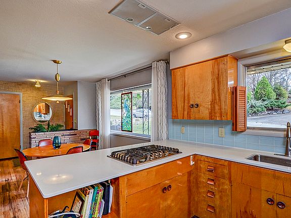 Mid-Century Gem in coveted Highlands neighborhood! Original refinished hardwood. Original period cabinetry, lighting and sandstone fireplaces. Kitchen update retains style w/ silestone counters, tile floors & stainless appliances. Classic to the 1950's rancher there are 3 large main floor bedrooms with ample closet space & lots of storage throughout. Walk-out basement, full of light & comfort, includes 4th bedrm and new en-suite bathroom. Easy access to downtown, foothill trails and desirable schools.