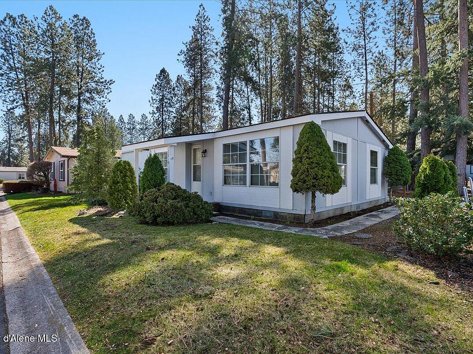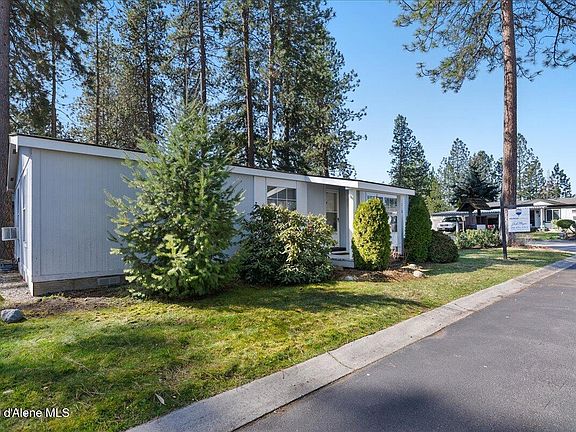 Treed corner lot in Northwood Estates 55+ mobile home park. This 2 bedroom, 2 bath home offers a large master bedroom with a full bath and walk-in closet, a roomy living area and a spacious kitchen. Brand new flooring, carpet, interior paint, water heater and carport post and beam. Close to shopping, medical facilities and the Kroc Center. The large Pine trees and landscaping makes for a private and beautiful North Idaho setting.