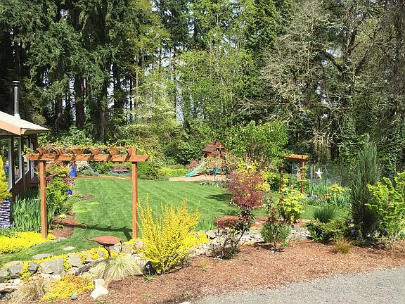 Beautiful home is located on a private 1.4 acre wooded setting with stream, watch birds and deer from a covered deck! Lot is dividable. Spacious rooms w/large new windows. Everything updated with custom finishes! There are two master bedrooms and three bonus rooms. Walk to Shopping, Restaurants, transportation, trails, George Rogers Park. Safe walk to Hallinan Elementary.