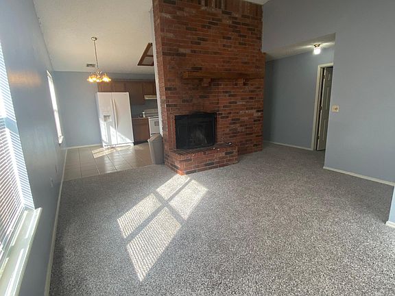 New dishwasher and oven, new carpet, freshly painted. Fireplace, skylights, cathedral ceiling in living room, walk-in master closet, huge laundry room with closet and w/d hook-ups. 1 car garage. Renter responsible for utilities. No pets. No smoking inside.