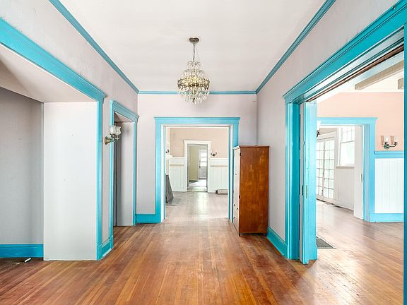 Inside, you will find an industrial kitchen (some appliances to remain), a ballroom, a bar, dining room, and a large porch surrounded by a wall of wavy glass. Upstairs features multiple bedrooms, bathrooms, and another full kitchen. The attic space is an expansive walk in area that could be finished if desired.