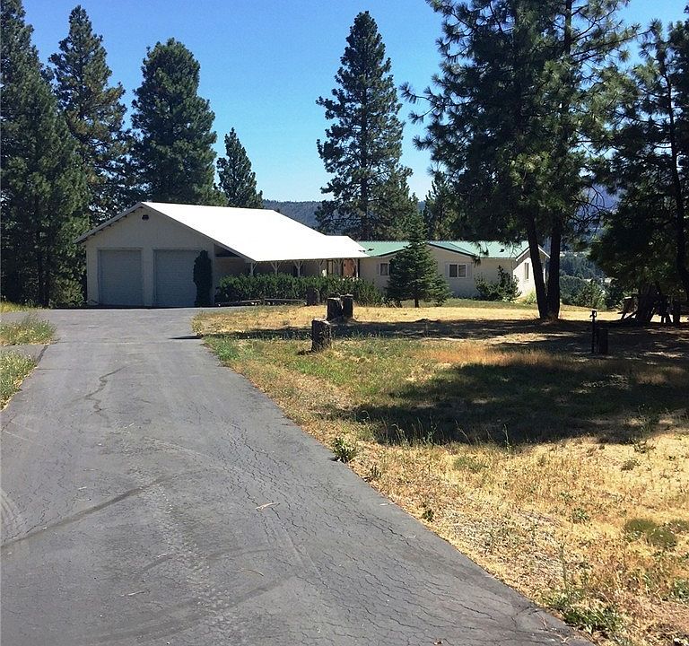 Enjoy the big views from this 4.09 acre parcel in the tall pines!Home is a 1,809 sq/ft 3bed/2bath Valley Quality home with a 1120 sq/ft shop with garage and workshop areas complete with woodstove.Property has paved driveway and off-street parking, well house, outbuilding, & 10 solar panels.Large deck for relaxing & enjoying the views. Partially fenced w/ gated driveway.Covered wood storage area, exposed aggregate sidewalks, breezeway from shop to house-great during the winter!