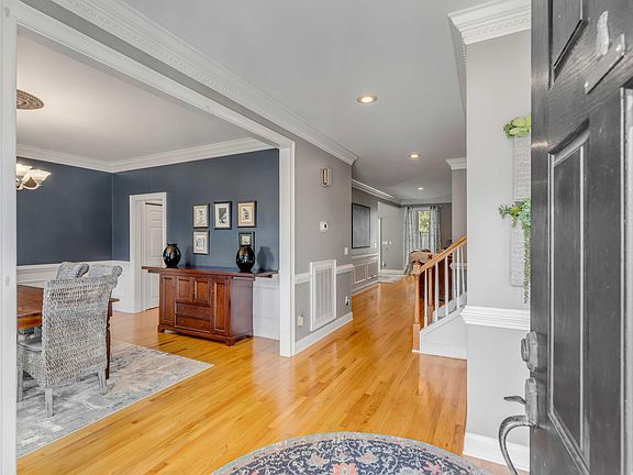 Located in sought after Hunt Club and directly across from a beautiful neighborhood pond sits 1210 White Tail Path. Hunt Club, offers a neighborhood pool, play area and is conveniently located near restaurants and shopping! As you enter the home you are greeted by a spacious entryway and dining room. Stepping further in you enter the large, open family room with wonderful details that include crown molding, built-in bookshelves and hardwood floors. The adjacent eat-in kitchen has a separate breakfast area, countertop seating and workspace. The kitchen and living area open to a screened-in porch and deck that spills into the fenced backyard. As you head upstairs, at the first landing, you'll see a large FROG with ensuite bath which melds perfectly as part of the home.At the top of the stairs sits the large primary suite featuring a tray ceiling, large walk-in closet and size-able bathroom. Two additional bedrooms, a full bathroom and a landing area with work/play space compose the second floor. A two car garage with storage area completes the home.