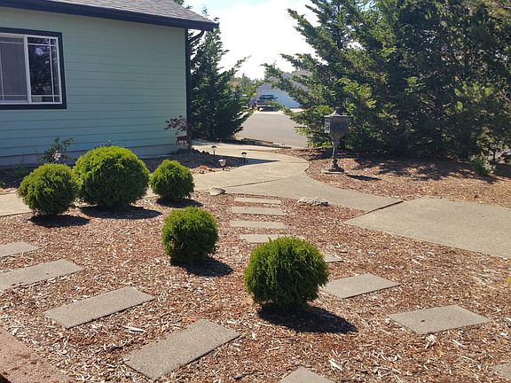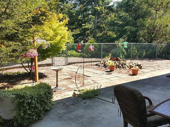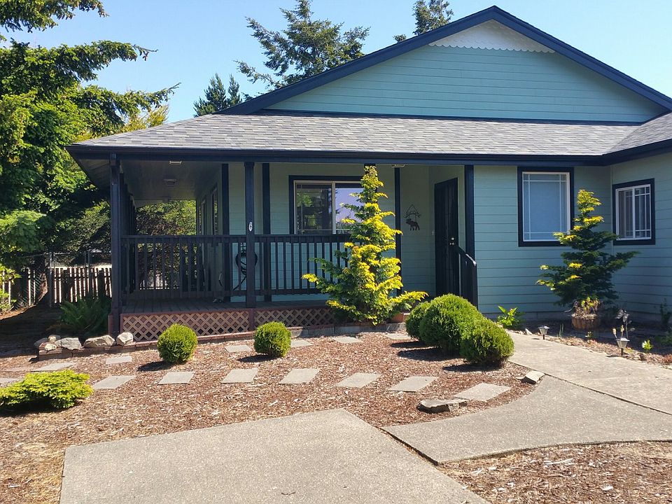Stylish, Coastal Highlands, elevated home with views of the mountains. New roof in 2019, new wrap-around deck railing spindles. Interior includes tiled kitchen countertops, and custom copper island counter with bar sink. Apx 6 inch oak wood floors, vaulted ceilings, built-in book cases, and much more. The covered back patio overlooks a fenced yard.