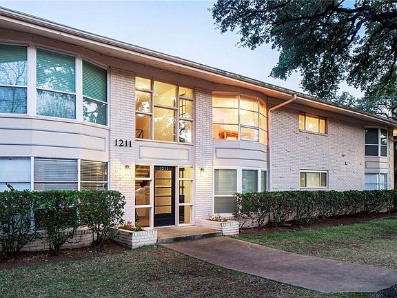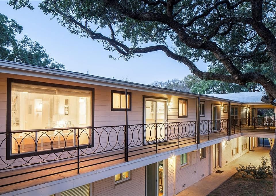 Here in the heart of historic Clarksville, this Mid-Century Modern pied-à-terre is a stone's throw from central Austin's go-to spots: Whole Foods, HOPE Outdoor Gallery, Jeffrey's, Caffe Medici and 24 Diner. Yet the 2-story brick campus is quiet and serene, nestled in a grove of mature Live Oak trees and oriented around a central courtyard with a kidney-shaped swimming pool. This unit has the largest and most attractive floor plan, and is arguably one of the best in the complex thanks to 2008 renovations: maple floors, custom cabinetry, limestone countertops, white subway tile, smooth drywall finishes, and new appliances and fixtures. An open floor plan connects the spacious living and dining spaces to tree-top views through large windows and sliding glass doors that open to the courtyard balcony. Bedrooms are tucked away and flooded with natural light and views of the trees. A unique opportunity to enjoy the neighborhood lifestyle without the hassles of single family home ownership.