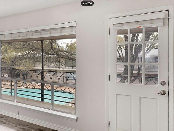 Incredible location within walking distance of shopping, dining, UT, and downtown. Top floor unit, with no upstairs neighbors, provides welcome peace and quiet. Overlooks pool and courtyard. Updated with new flooring and paint. Open floor plan with tons of natural light and treehouse feel. The kitchen has granite counters. HOA dues include electric/water/trash. Cats and dogs allowed. The washer and dryer are coin-operated on-site. Surrounded by beautiful oak trees. Gated community with covered parking.