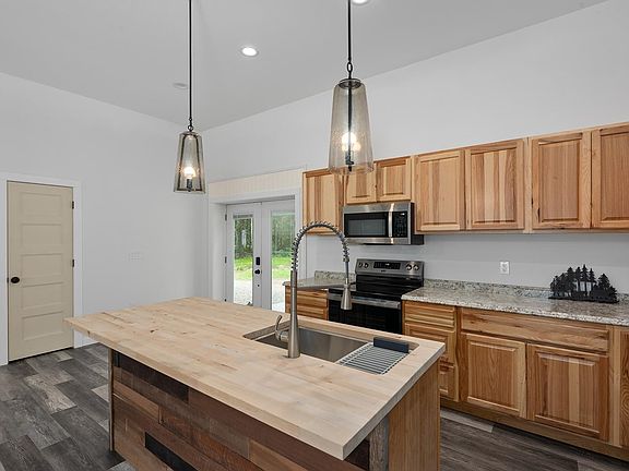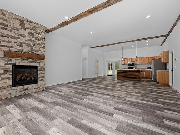 Experience the perfect blend of modern comfort and serene Northwoods living in this brand new two bedroom, one bath home set on 1.5 acres. With soaring 10-foot ceilings and oversized patio doors, natural light floods the open-concept living area, showcasing a stunning floor-to-ceiling gas fireplace. The kitchen boasts hickory cabinets and brand new appliances. The insulated concrete form construction and in-floor heating throughout the home and attached, insulated 1-car garage ensures year-round comfort. A versatile bonus room, currently staged as a theater, offers endless possibilities. Though cozy, the home is equipped with a three-bedroom septic, providing options for the bonus room. Nestled close to town, this property offers the convenience of nearby amenities while enjoying a peaceful, private setting with abundant wildlife.