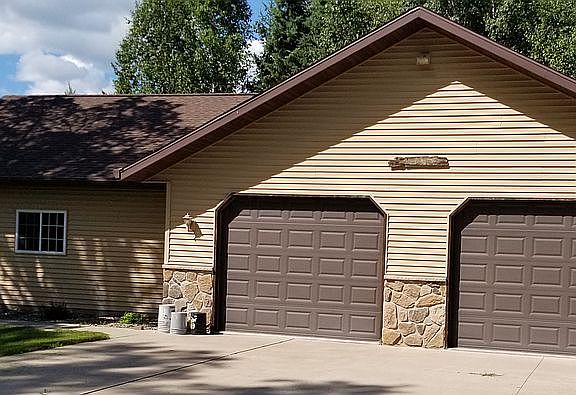 Beautiful home with hewn log siding on 80 acres. 2 car insulated attached garage, 4 stall 1860 sq. ft. detached garage (half is separate and insulated and heated) with bathroom. 50' x 80' pole shed with 12 ft. sidewalls and sliding doors on both ends. 40' x 48' barn with 48' x 11' lean-to. Barn has cement floors, 3 horse stalls, tack room, and hay loft above. House 2 bedrooms with large walk-in closets and potential for 2 more bedrooms in walk-out lower level. Hot tub on lower level. Large master bath upstairs. Large walk-in pantry off of open floor plan kitchen. Electric storage heat with heat pump, in floor heat in basement with wood burning stove. Gas fireplace on main level. Main floor laundry in mud room. 14 x 14 insulated sunroom which is ready to be finished to your liking. Acreage has some wooded and some fenced open fields and paddocks with multiple automatic waterers. 8 x 10 insulated and fenced storage/dog house/chicken coop with electricity.