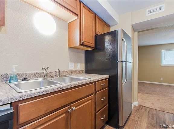 Such great value and hard to find 2 spacious bedrooms with 2 full bathrooms including a full-size master bathroom. Kitchen and bathrooms remodeled with newer appliances. Newer windows too! Washer and Dryer hook-ups in the unit. Close to I-25 and many restaurants and shopping.