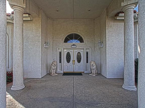 A phenomenal beauty in Country Rose Estates! This 3941 sq ft home on a huge half acre corner lot features 4 bedrooms, 2.5 bath, pool with boulder waterfall and a swim-up bar with stools, 4 car garage, and a separate toy hauler's dream garage! The gated driveway leads to the 26'x 40' RV structure complete with bathroom and a room for office or gym. The home's interior is perfectly elegant, featuring numerous arched windows, columns, double tray ceilings, fireplaces, built-ins, an 80 inch smart TV, a gorgeous kitchen with granite, stainless, double ovens, pantry, island, and breakfast nook. Generously sized guest rooms and master suite featuring a dual-sided fireplace, Jacuzzi tub, an armoire-faced mirror, and a fantastic walk-in closet. Tons of storage throughout!! Lack of space will never be an issue for you again!!