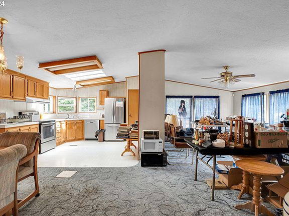 BOM no fault of the property or sellers. The buyer never scheduled inspections. Spacious 1512 sqft, 3 bed, 2 bath, 48 x 29 workshop, 47 x 15 garage, including 27 x 28 carport to protect your vehicles, and all on a sprawling 1.13-acre lot. The bright and airy living room is framed by numerous windows that highlight the stunning views of the expansive property. The kitchen features multiple skylights, tile flooring, and a built-in dishwasher, an abundance of storage that seamlessly connects to the dining room with built-ins, and a sliding door to the backyard. The primary ensuite bedroom is a serene retreat with its vintage-inspired bathroom, complete with wall-to-wall carpet, double closets, a step-in shower, skylight, and double sinks. Two additional bedrooms provide ample space, each with double closets. Outside, enjoy versatile workshop options, including a 27x48 covered area for cars, RVs, or boats, a spacious 48x29 workshop, and a 47x15 smaller garage. Home is on foundation and qualifies for traditional loan programs This home blends comfort with practicality—make it yours today!Interior photos to follow after the completion of the family estate sale.