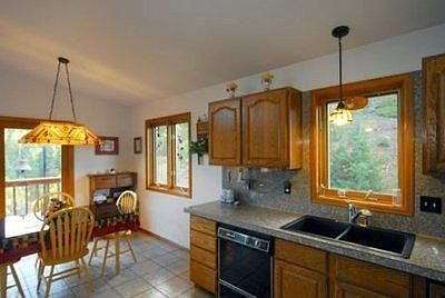 Well-maintained aptly describes this immaculate homesunshine infuses the great room, which has a wood-burning corner fireplace and the well designed kitchen has granite tile counters, tile floors and a stove with double oven. A wraparound deck captures distant vistas and reinforces the seclusion and privacy of this lot. A main floor master suite has a private bath while a second bedroom has access to the hall bath. Equally sunny, the walk-out lower level has a family room that is just a few fee