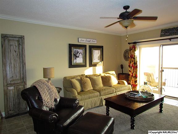 Beautiful waterfront view of the TN and Elk river from great room and Master Bedroom. This Lovely condo has been completely updated with tile, granite, custom cabinets and beautifully furnished. Enjoy beautiful sunsets over the TN river from private patio. Boating, fishing, pool, community fitness room, beach area, tennis courts, Boat Slip included with 8000 pound boat lift and parking garage spot. Condo is a 3 bedroom and 3 full baths, large open great room and kitchen. Nuvo sound system thru out the condo and including patio. Wet bar with sink and ice maker. Nicest unit in the complex. Vacation all year round!