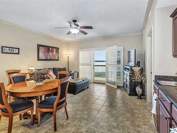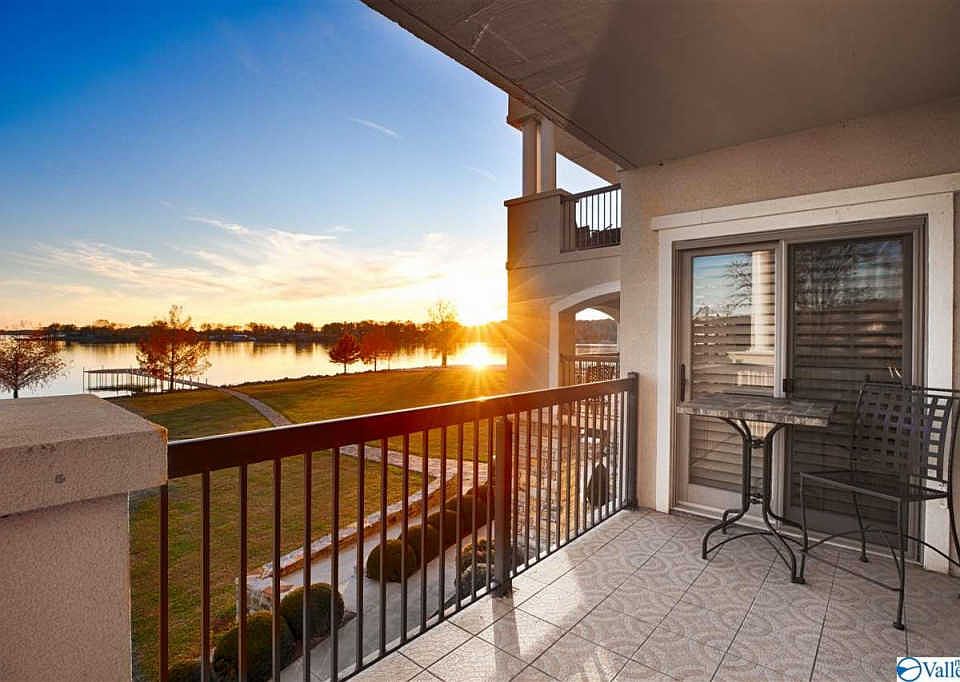 Fully furnished waterfront condo with breathtaking views of the Elk and Tennessee rivers located in the gated resort-like community of The Pointe at Two Rivers. Enter through the elegant lobby with gym and conference/gathering room. Condo features 3 bedrooms & 3 full baths. Kitchen with granite counters, island & breakfast bar open to living & dining room. Wet bar with ice maker & sink. Enjoy the most stunning sunsets over the water from the covered patio. Isolated master suite with incredible view. Beautifully manicured grounds with tennis, putting green & salt water pool. Day pier, fishing & boat docks. Boat slip/lift available for separate purchase.