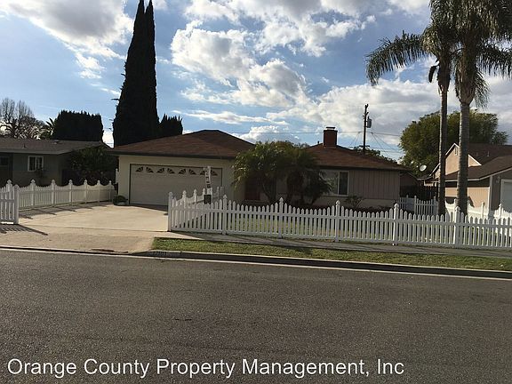 White Picket Fence Home: 3 Bedroom 2 Bath Home - White Picket Fence Home: 3 Bedroom 2 Bath Home, Kitchen with Island Top, Stove, Dishwasher, Microwave (As Is), Refrigerator (As Is), Tiled Counter Top, Separate Dining, Ceiling Fan, Vertical Blinds, Large Brick Fireplace, Newer Style Windows, New Carpet Throughout, Original Wood Floors, Central Air & Heat, Large Patio Cover, Huge Back Yards With Fruit Trees, Shed (As Is), Double Attached Garage With Opener, Work Bench, Laundry Hook-ups, Near Parks, Schools & Garden Grove Promenade. HUD NO PET:OK (RLNE2864316)