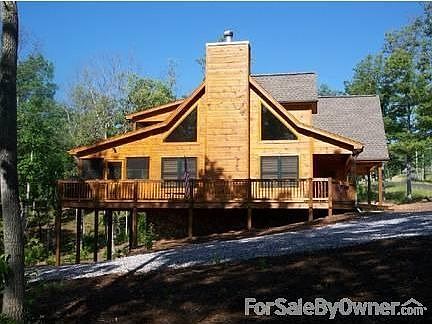 Luxurious three level chink log sided home nestled on 1.2 acre gentle sloping treed lot in upscale HIGHTOP MOUNTAIN SUBDIVISION.   Home has beautiful views of the trees and low mountains.   15 minutes to Murphy, NC , 2 hours north of Atlanta. Home has soaring ceilings, walls of glass, three levels of large decks, one lower level patio. Large screened in outdoor porch with gas log fireplace enterred through French Doors from living room on main level. 3 Bedroom, 3 1/2 Baths, large LOFT overlooking floor to ceiling stone fireplace. Canadian Maple hardwood floors on two levels, Indian slate floors in Kitchen and baths, custom tumble stone shower and jetted spa tub in Master Bath. Stainless Steel appliances in UPPER AND LOWER LEVEL KITCHENS. Smooth top electric range. Hickory Kitchen cabinets combined with corian counter tops. Solid Wood doors throughout. Ceiling fans in every room as well as on all decks. Matching Antique Faux copper finish on doorknobs, fans, faucets and fixtures. Front load ENERGY STAR washer and dryer.  $3,000 in custom wood blinds. Double iinsullated solid wood alum. clad windows. Gravel driveway.   Additional lanscaping has been added since pictures were taken.    Home is like new, only used on vacation a few times a year.   NEW SHED 12 X 16 with windows and double door.           GREAT LOCATION  15 min to Murphy, NC or downtain Blairsville and 20 min. to Blue Ridge.   Available shopping, restaurants, nearby hiking, horseback riding, golfing and 2 miles to beautiful Lake Nottely.   Email Helen for more photos at hrun@optimum.net.